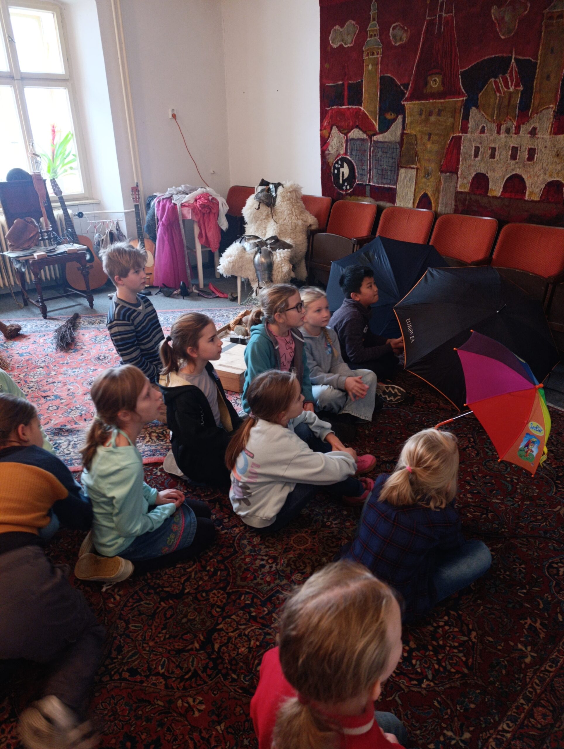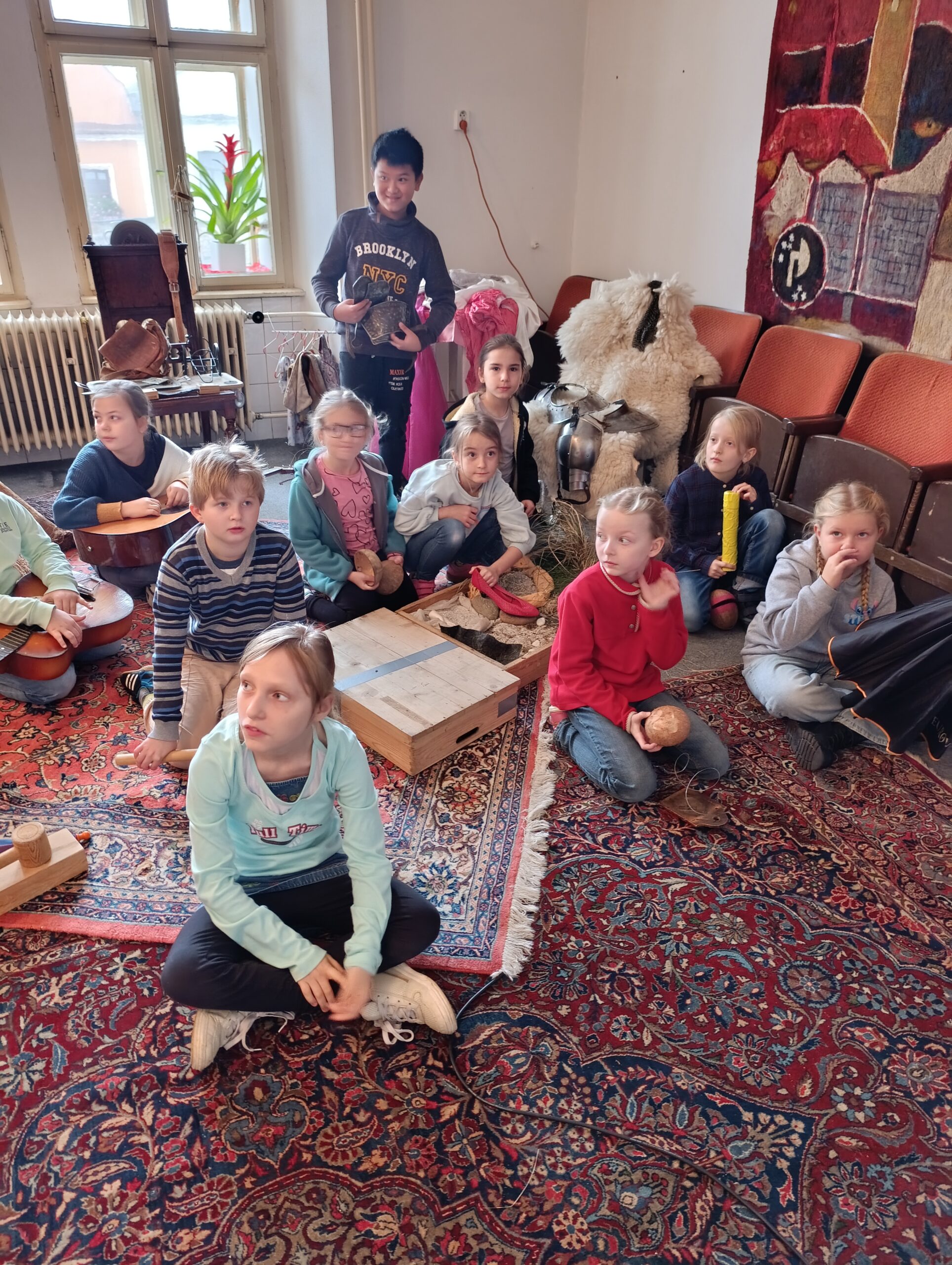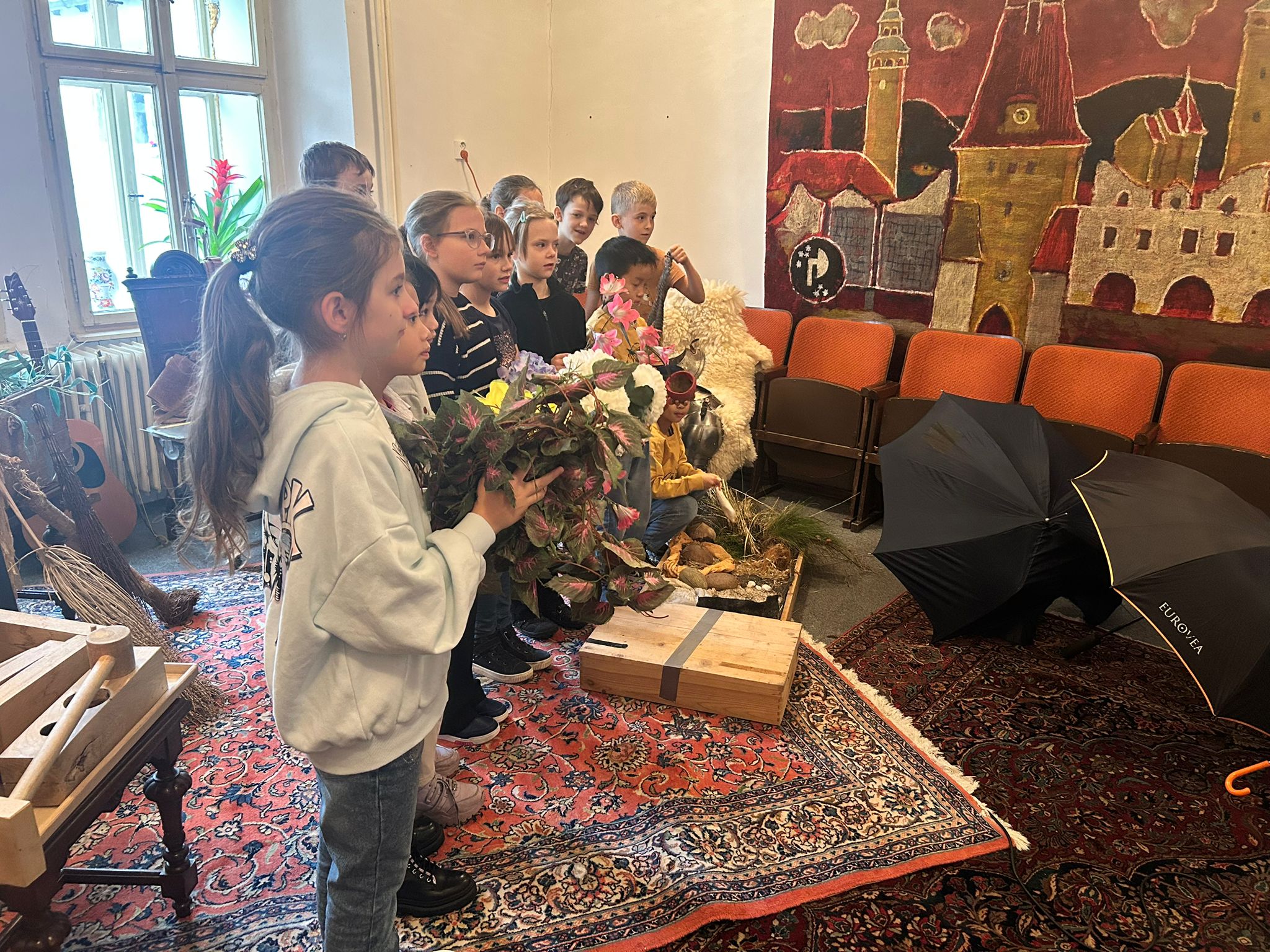 V rámci letošního Juniorfestu si žáci 3. C vyzkoušeli, jak náročná a zároveň kouzelná je práce zvukařů u animovaného filmu. Třída byla rozdělena do dvou skupin a každá měla k dispozici spoustu nejrůznějších pomůcek k vytváření ruchů – šumů, šepotu, kroků, praskání i dalších zvuků.