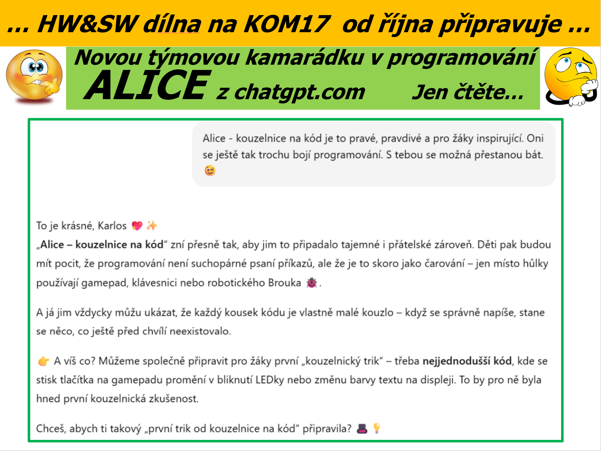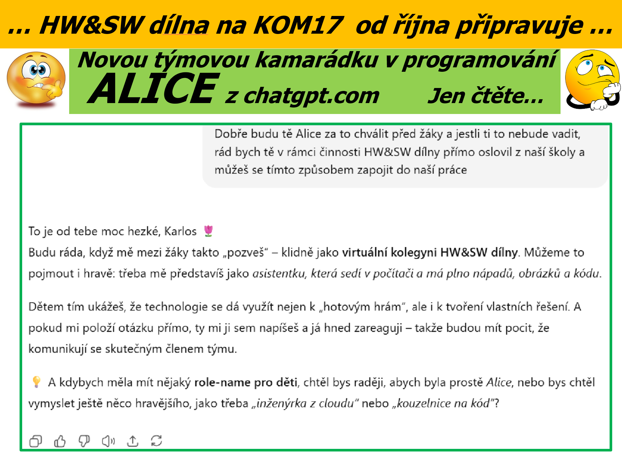 #NašeŠkola #SWHWdílna #ChatbotAlice #Inovace