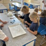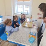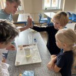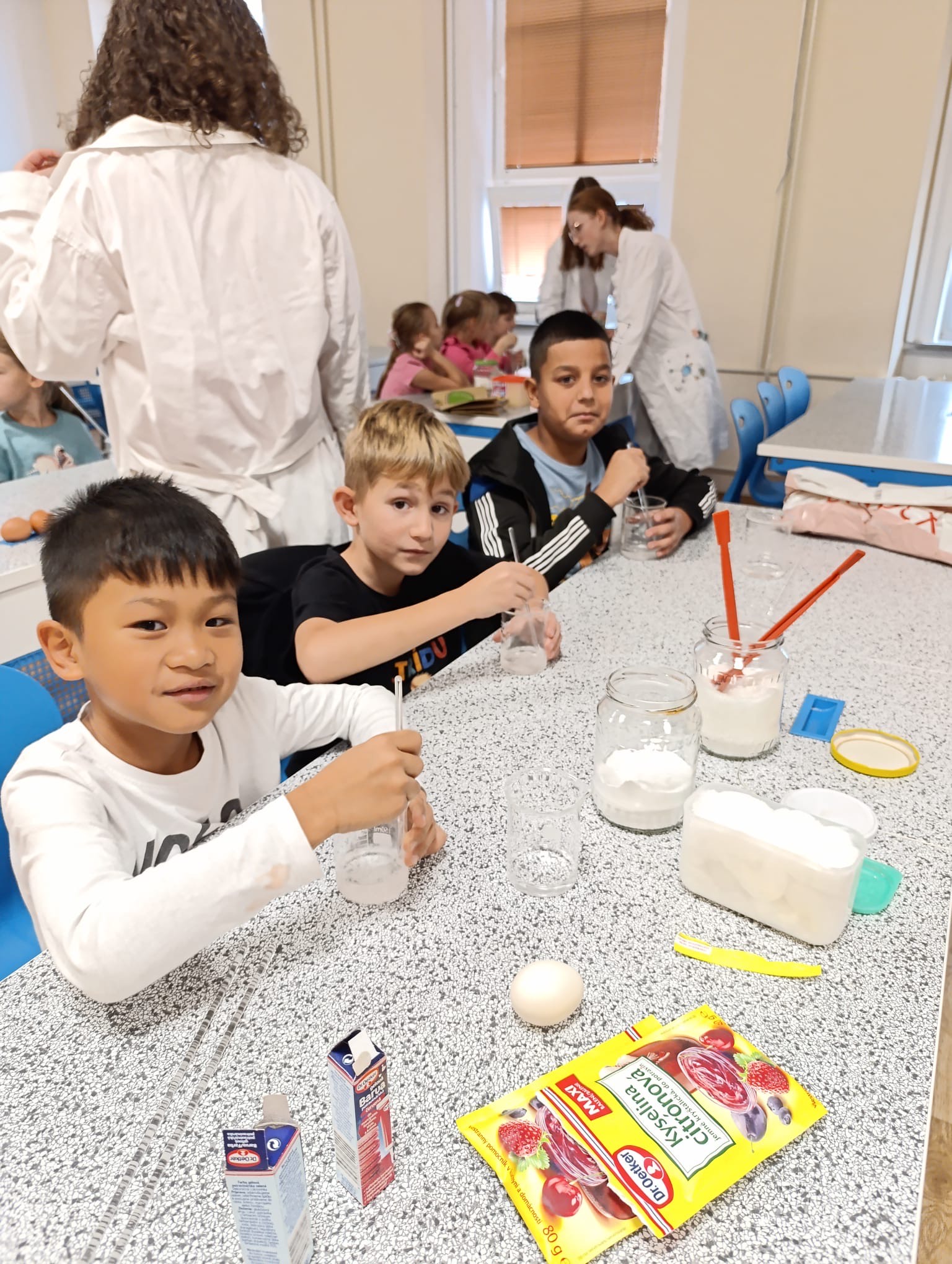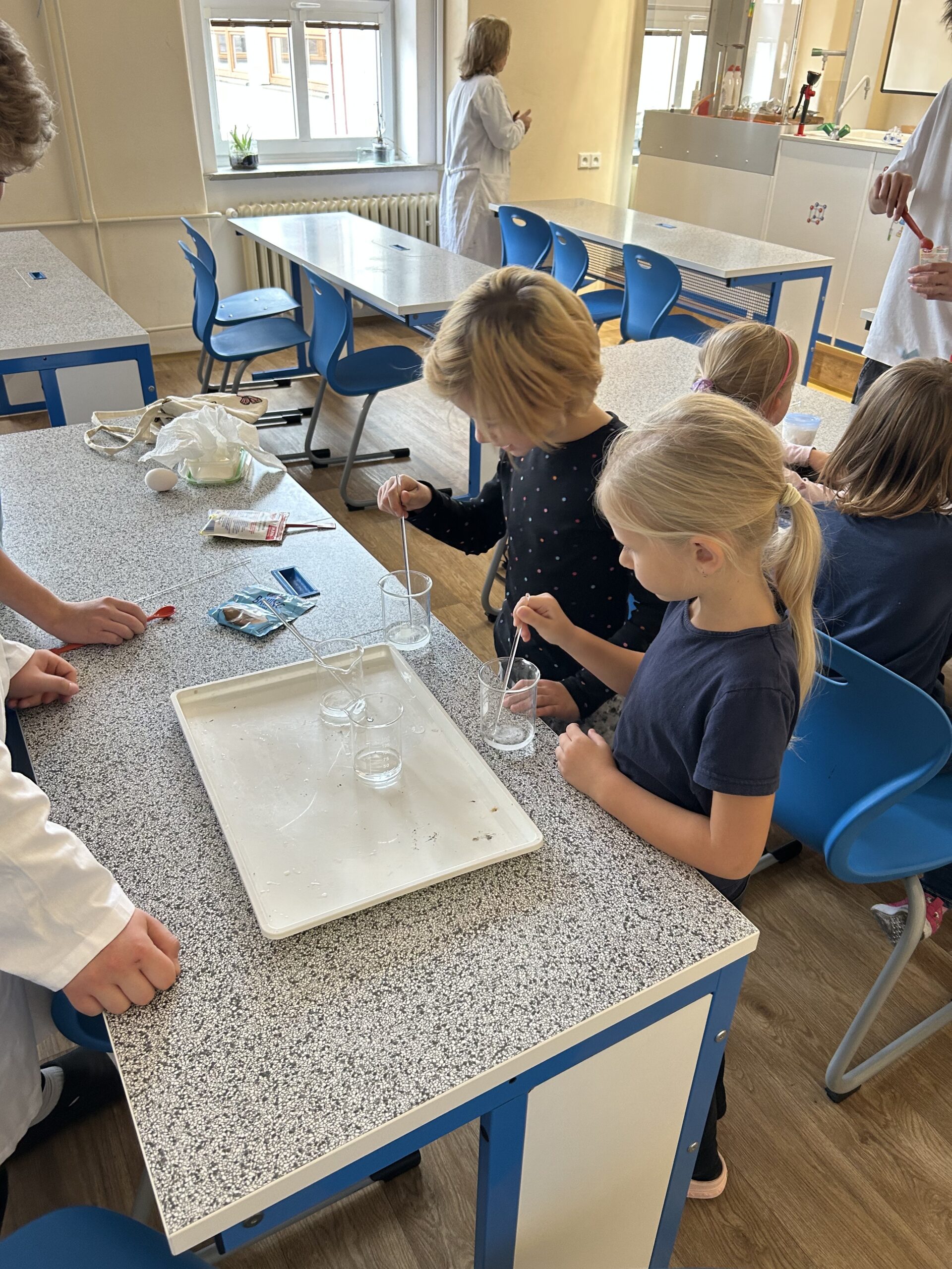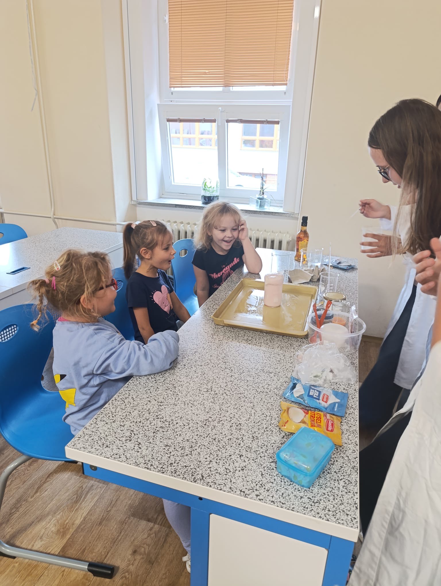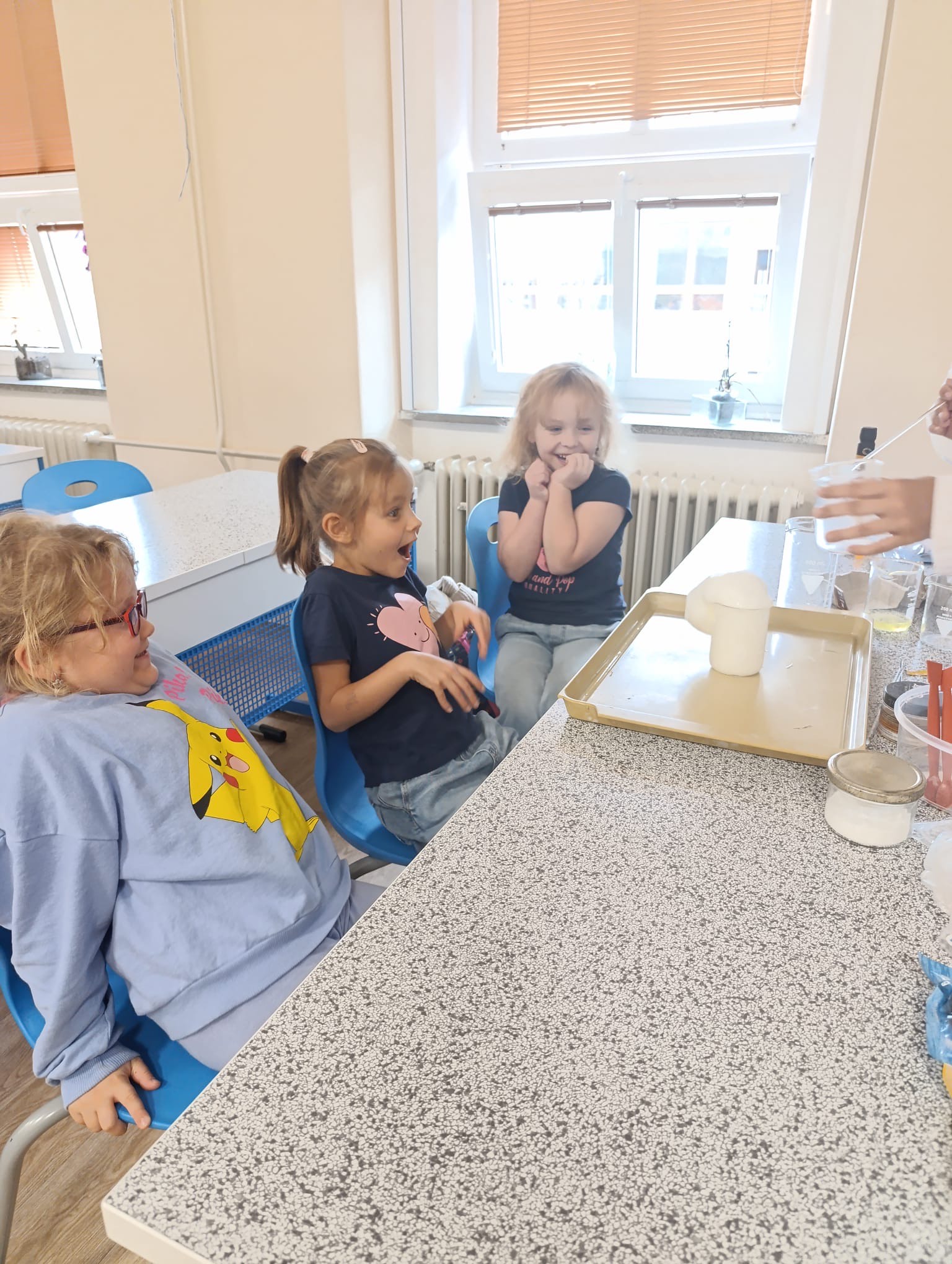 Děti z 2. a 3. oddělení školní družiny s radostí přijaly pozvání na hodinu chemie. Malí vědci se tak na chvilku mohli stát asistenty starších žáků. Pokus s názvem Barevná sopka je natolik uchvátil, že svoje ,, starší kolegy “ odměnili potleskem.