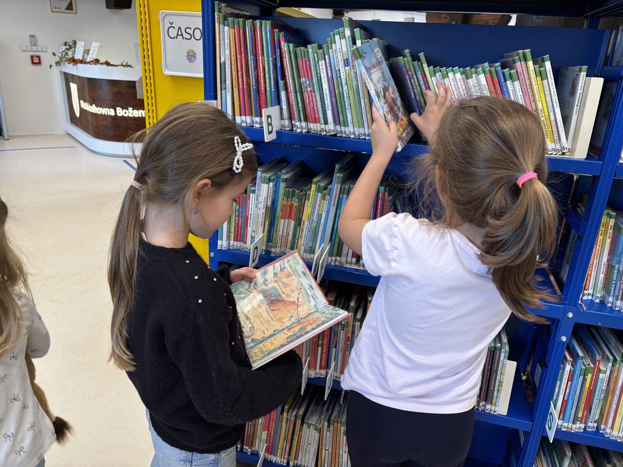 Vydali jsme se tam společně, abychom prozkoumali, co všechno knihovna nabízí – a nebyli jsme zklamaní, protože prohlídka knihovny byla opravdu zajímavá a plná objevů! Procházeli jsme jednotlivé regály a zjišťovali, jaké knihy se v nich skrývají. Některé byly plné dobrodružství, jiné zase pohádek, naučných knih nebo obrázkových příběhů. Nejvíce nás ale zajímalo, kde najdeme knížky pro první čtení – vždyť se z nás brzy stanou opravdoví čtenáři! Teď už víme, kde si takové knihy můžeme půjčit, až přijde ten správný čas :-).
