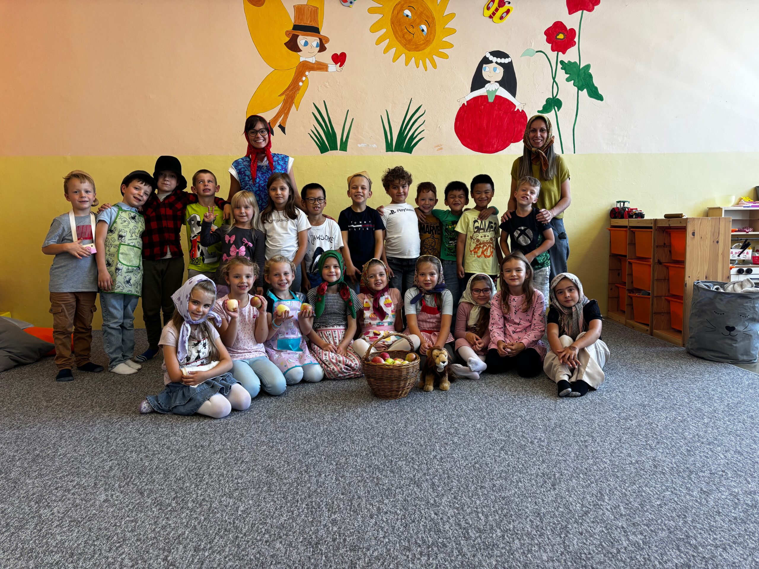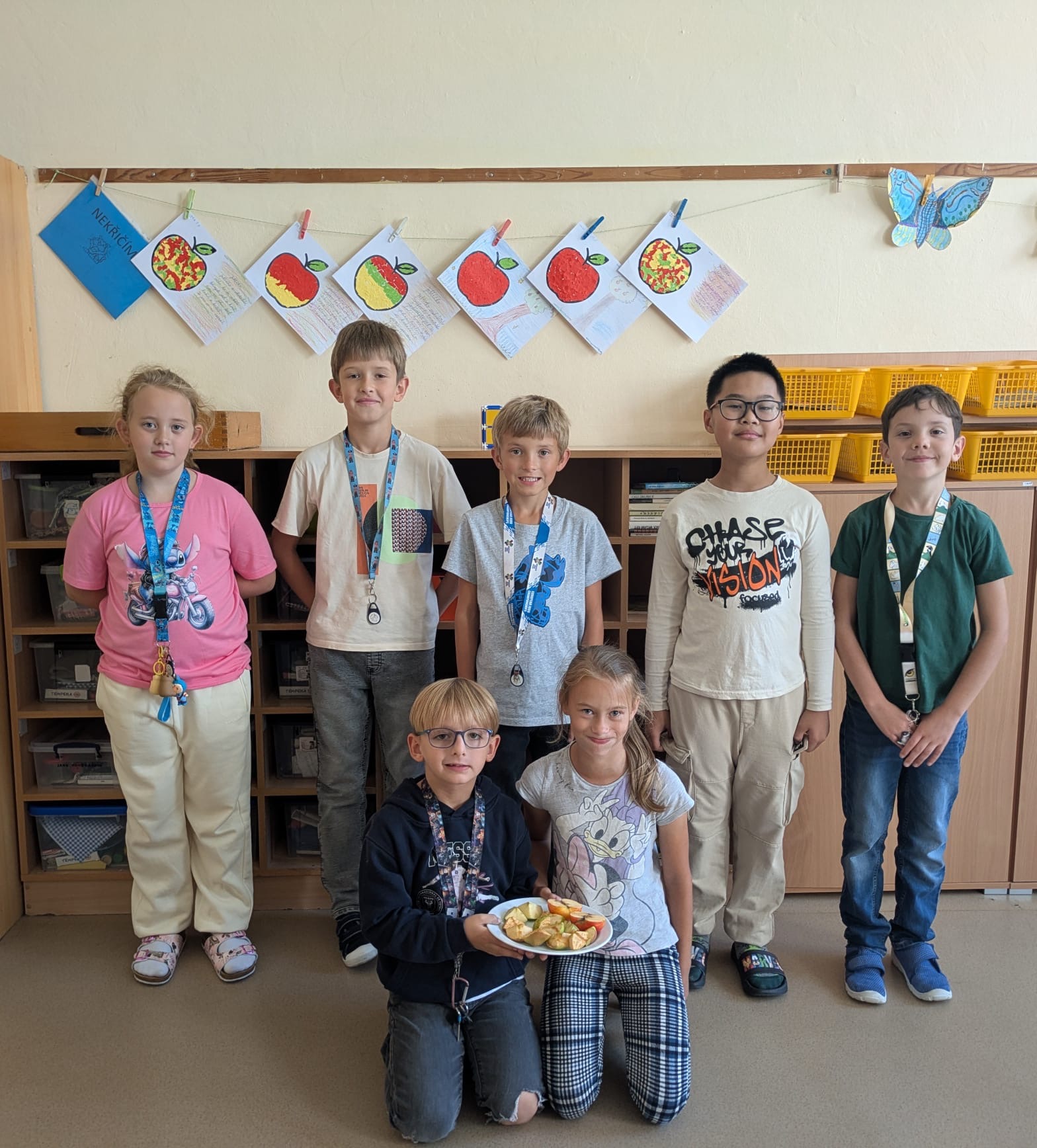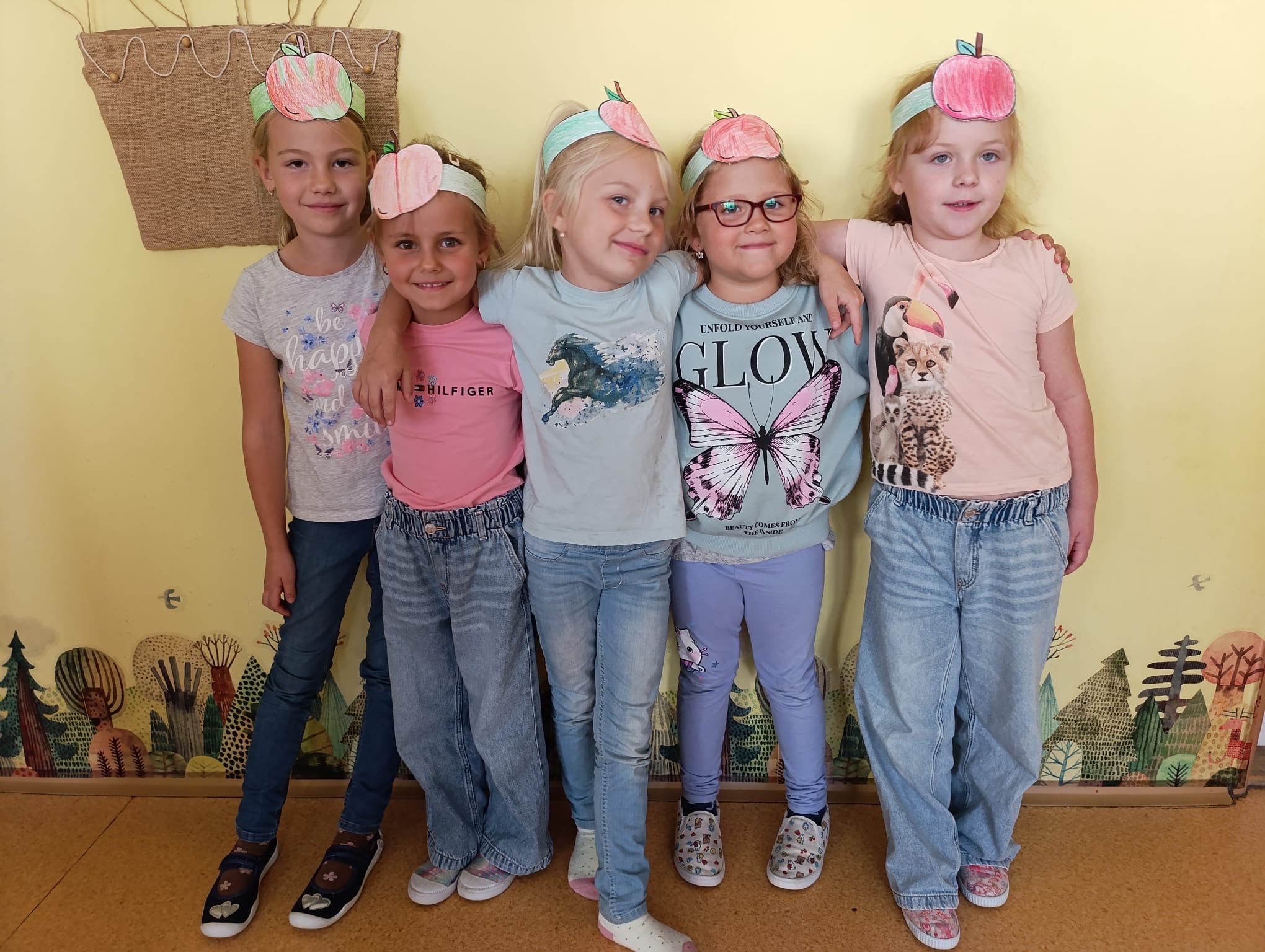 Páteční slavnostní zakončení projektu patřilo společnému tanci – na chodbě školní družiny si všechna oddělení společně zatančila Mazurku na známou píseň ,,Měla babka čtyři jabka“. Velkým zážitkem bylo také tvoření na školní zahradě, kde děti společně vytvořily obrovský tvar jablka – symbol celého týdne.