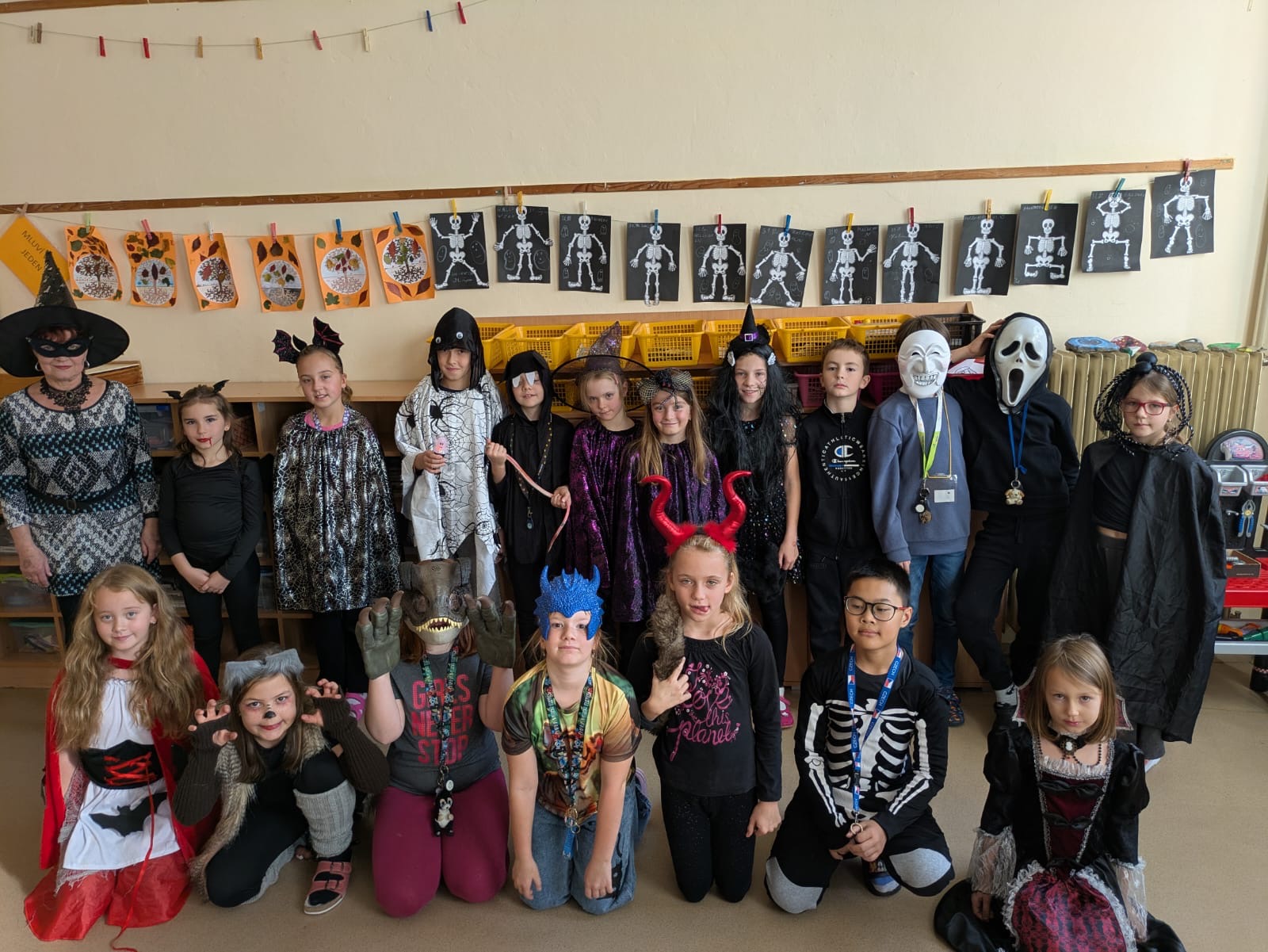 A protože ani malé dušičkové světýlko neuhasí dětskou energii, po vážnější části nás čekalo veselé halloweenské dovádění! Děti plnily strašidelné úkoly, řešily hádanky a nakonec je čekalo velké překvapení – Halloweenská diskotéka! V tělocvičně se tancovalo, pinkaly se balónky, strašidla tančila po boku princezen a superhrdinů – a kamarádství vítězilo na všech frontách.
