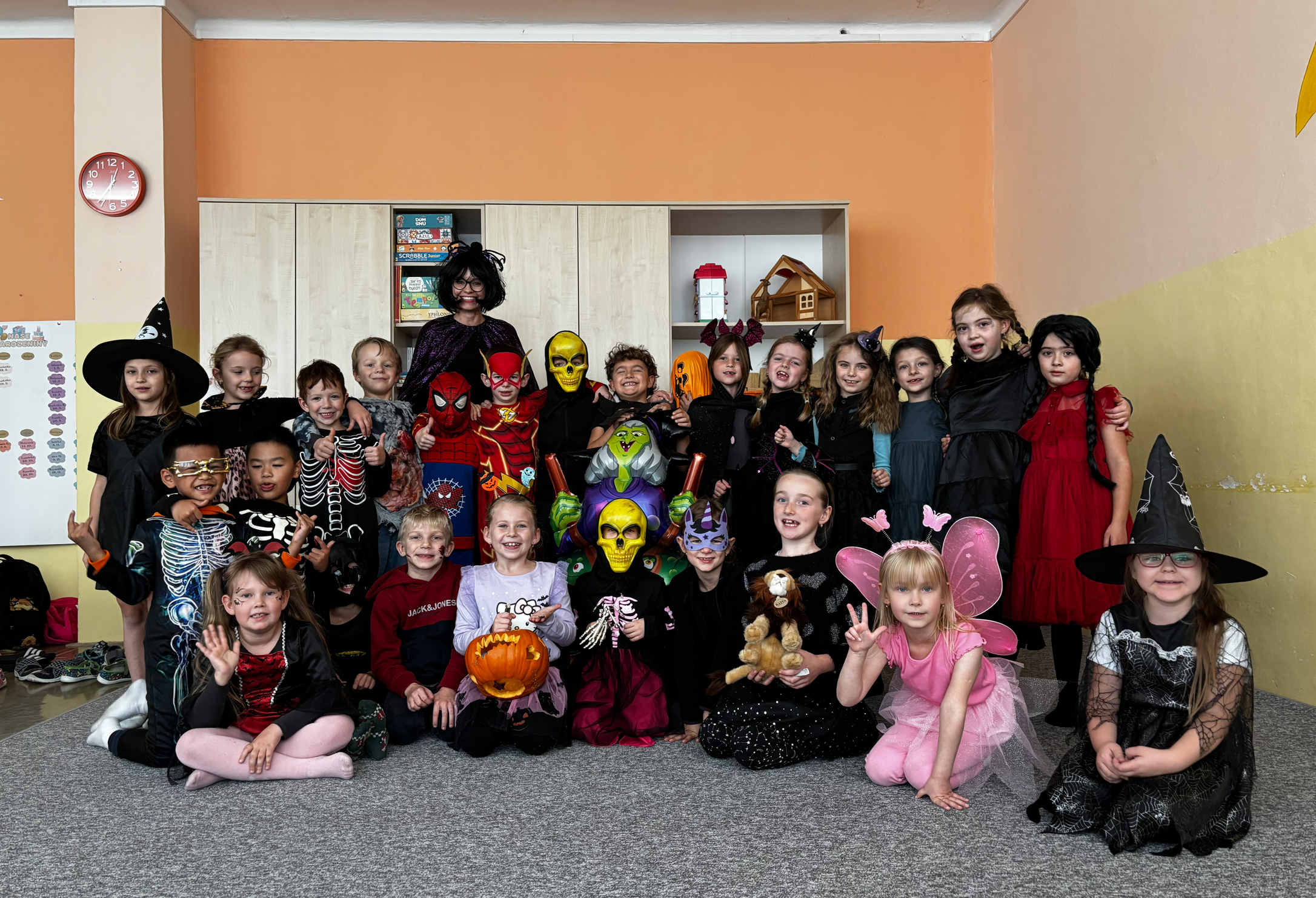 A protože ani malé dušičkové světýlko neuhasí dětskou energii, po vážnější části nás čekalo veselé halloweenské dovádění! Děti plnily strašidelné úkoly, řešily hádanky a nakonec je čekalo velké překvapení – Halloweenská diskotéka! V tělocvičně se tancovalo, pinkaly se balónky, strašidla tančila po boku princezen a superhrdinů – a kamarádství vítězilo na všech frontách.Děkuji všem dětem za skvělou atmosféru a také paním vychovatelkám, které s dětmi prošly dvěma rozdílnými svátky a dopřály jim den plný světla, radosti a tance.