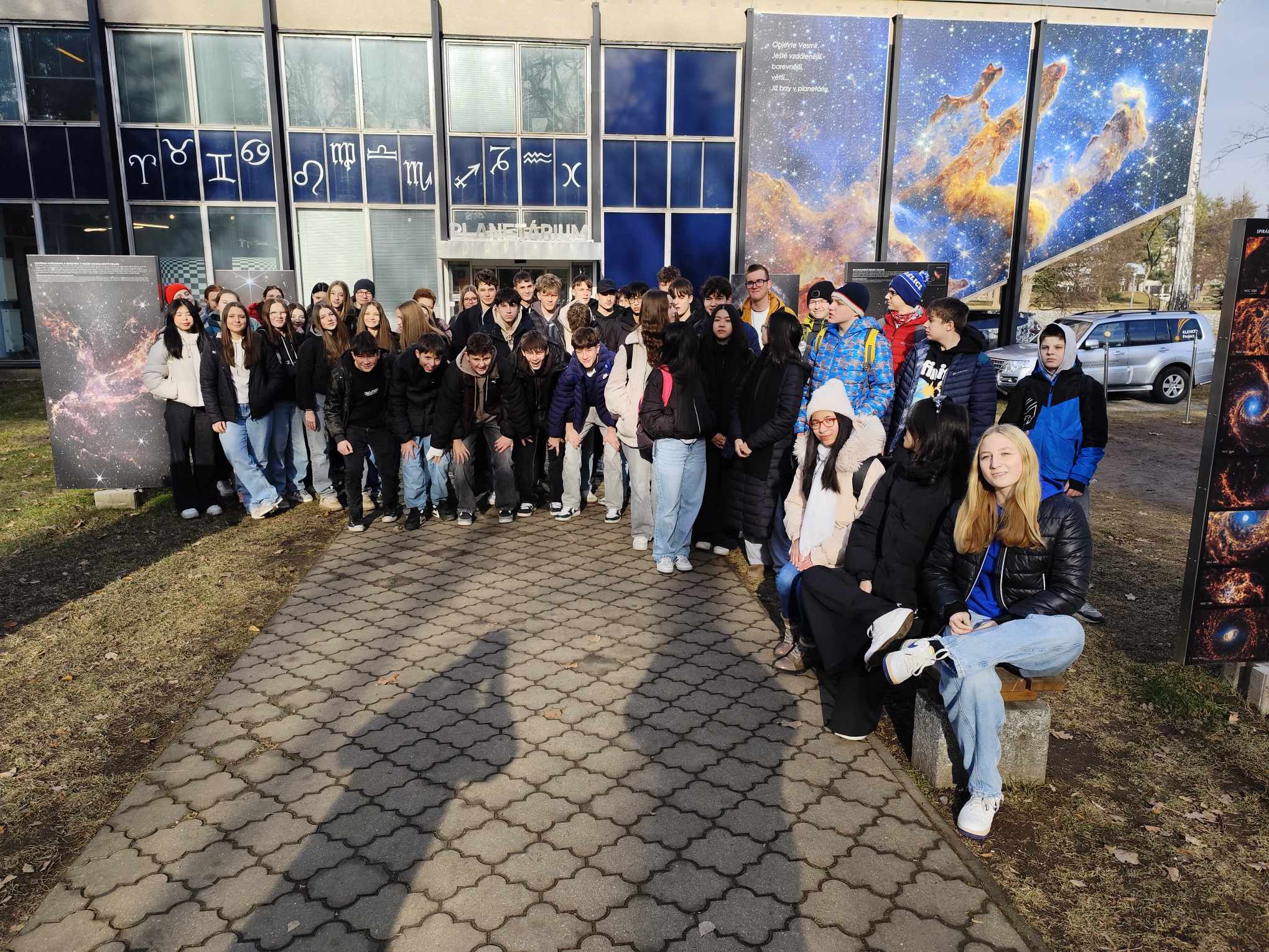 Se žáky všech devátých ročníků jsme 18. 2. a 25. 2. 2025 navštívili Hvězdárnu a planetárium v Českých Budějovicích. Viděli jsme film o astronautech a o budoucnosti na Měsíci. Nejzajímavější částí bylo promítání hvězdné oblohy v kopuli hvězdárny s odborným výkladem. Vyzkoušeli jsme i digitální aplikaci Sluneční soustava u venkovních modelů planet. Prohlédli jsme si i historické centrum. Přestože jsme vyzkoušeli bludný kámen na náměstí, nikdo se neztratil. V Českých Budějovicích se nám moc líbilo.