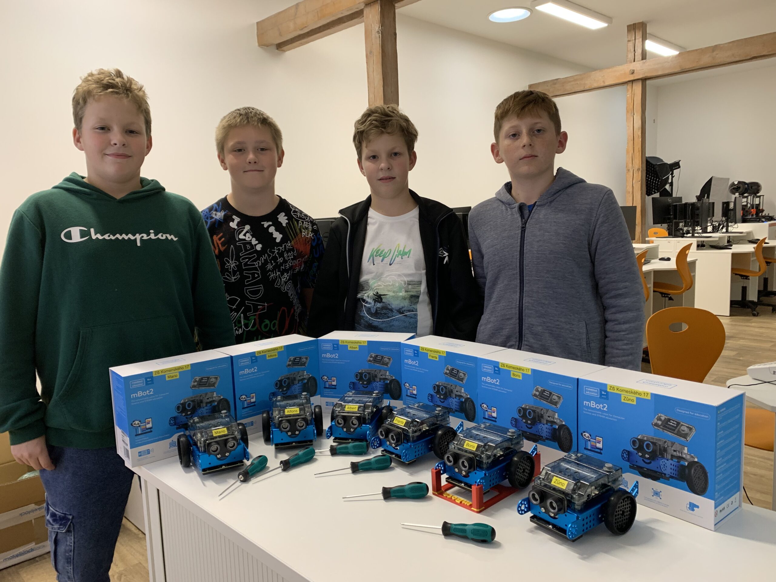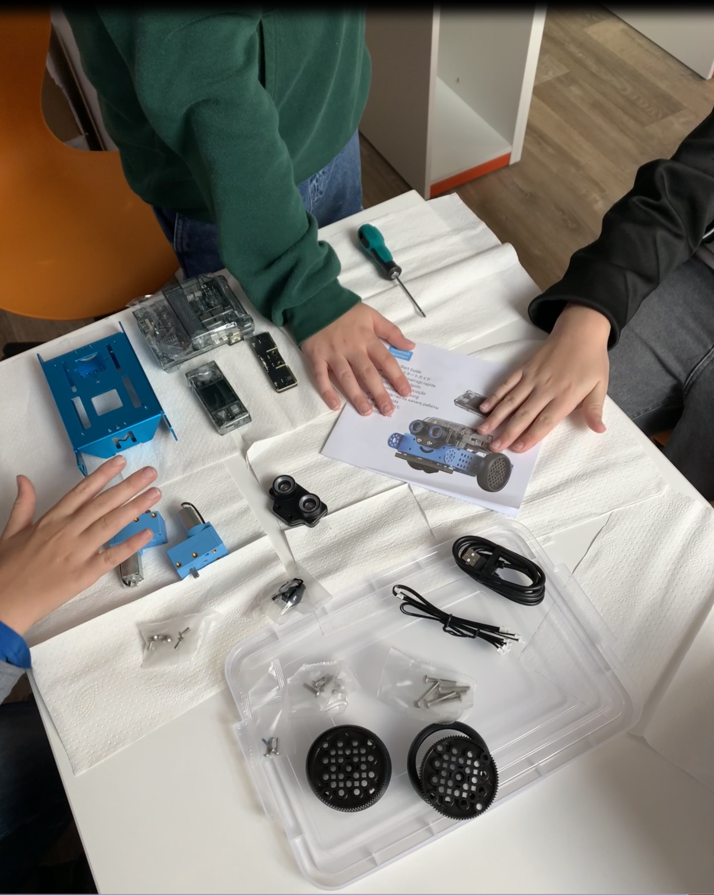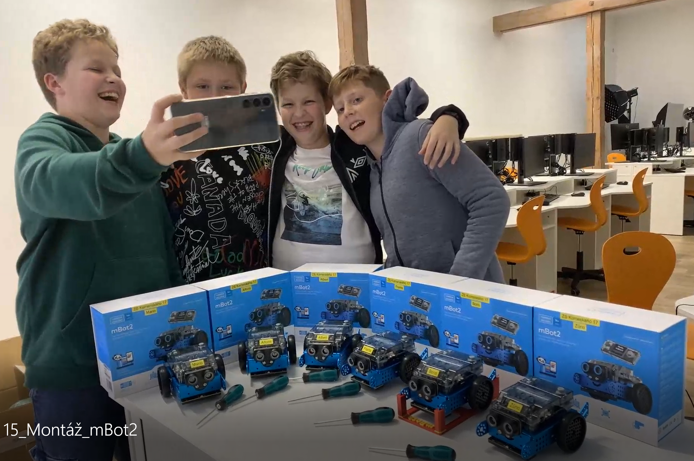 Zcela samostatně chlapci z HW&SW dílny smontovali moderní robotická auta mBot2 pro mladší spolužáky z pátých tříd, kteří se jako prvnív rámci projektového dne, pokusí probudit některé funkce aut prostřednictvím programovacího jazyka mBlock-Scratch (https://mblock.cc/).