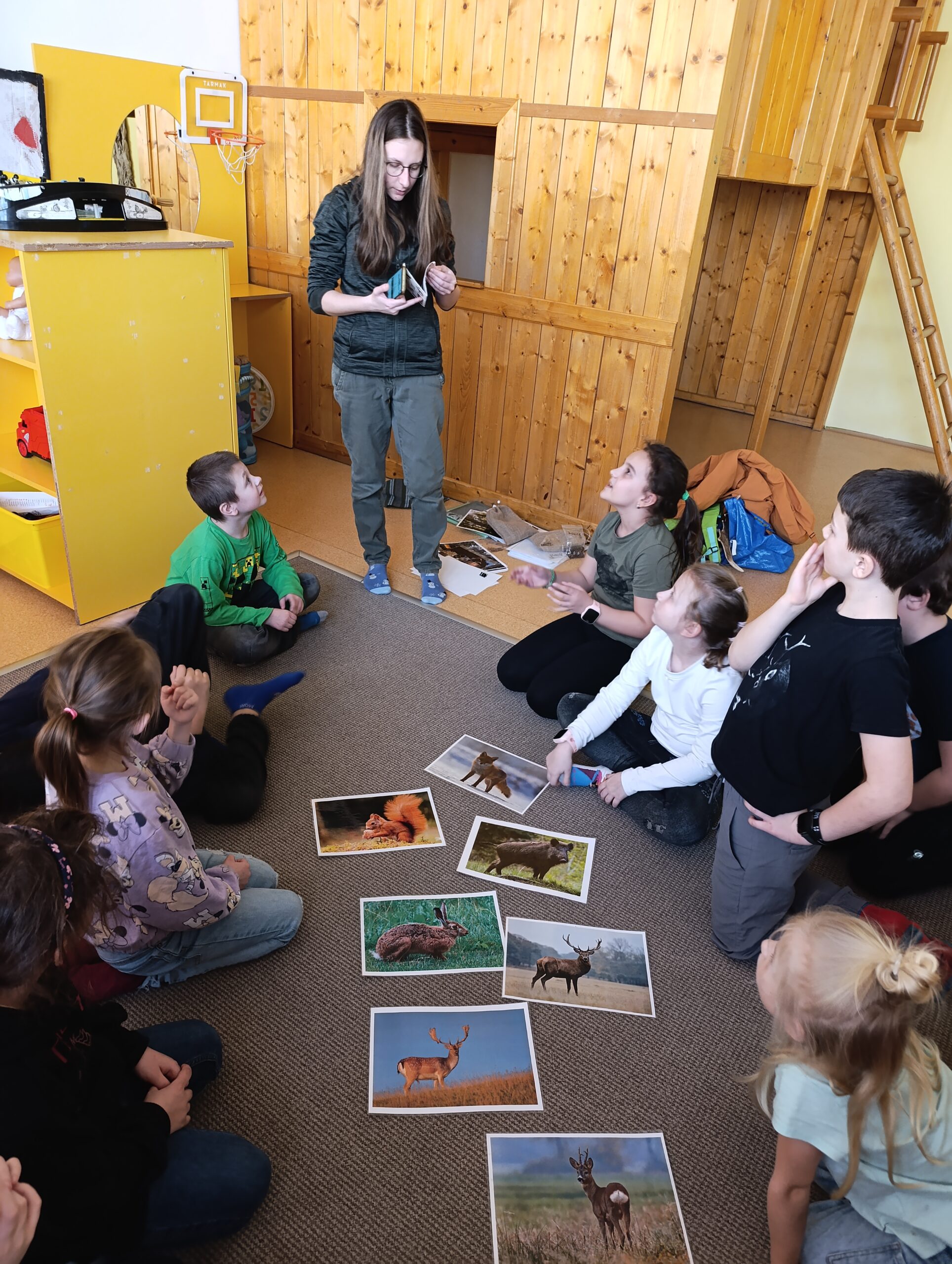 Rádi jsme opět přivítali paní Skalovou z Domažlických městských lesů. Tentokrát si pro nás připravila povídání na téma „Les do každé školy“. Děti se seznámily se zvuky lesní zvěře, řešily hádanky podle hmatu. Nejvíce je