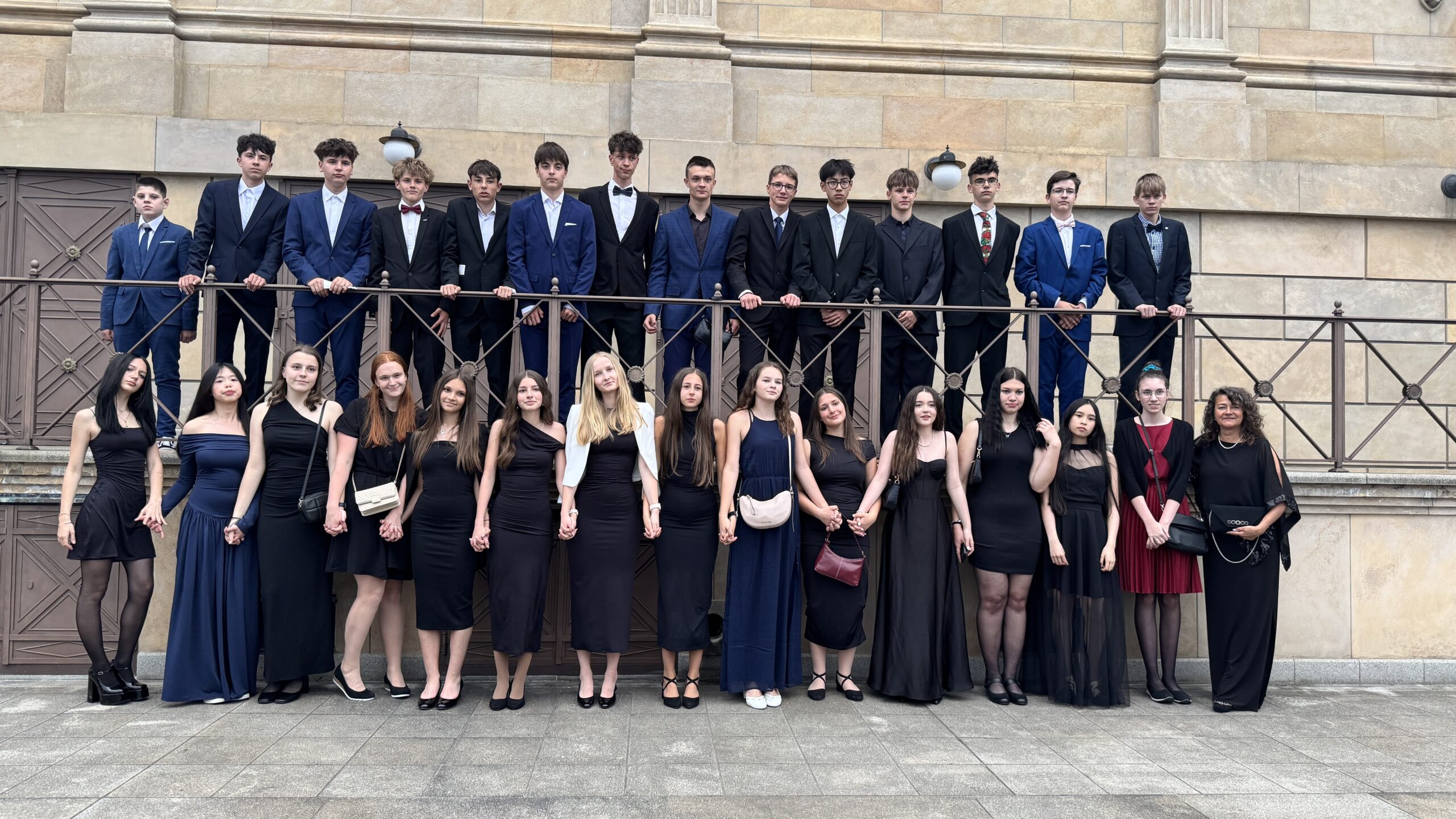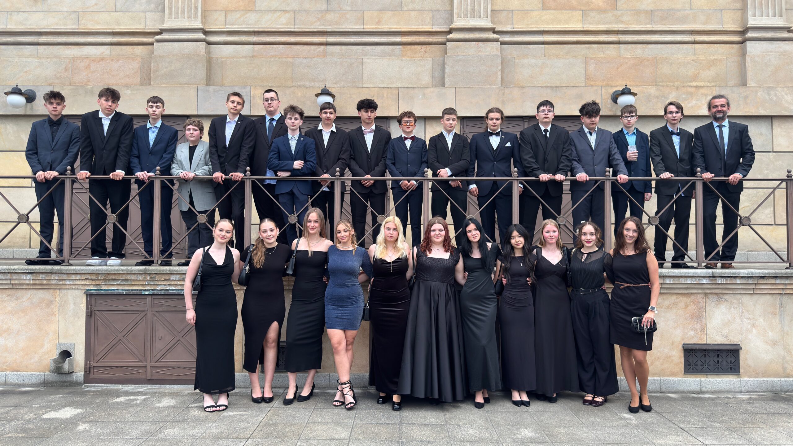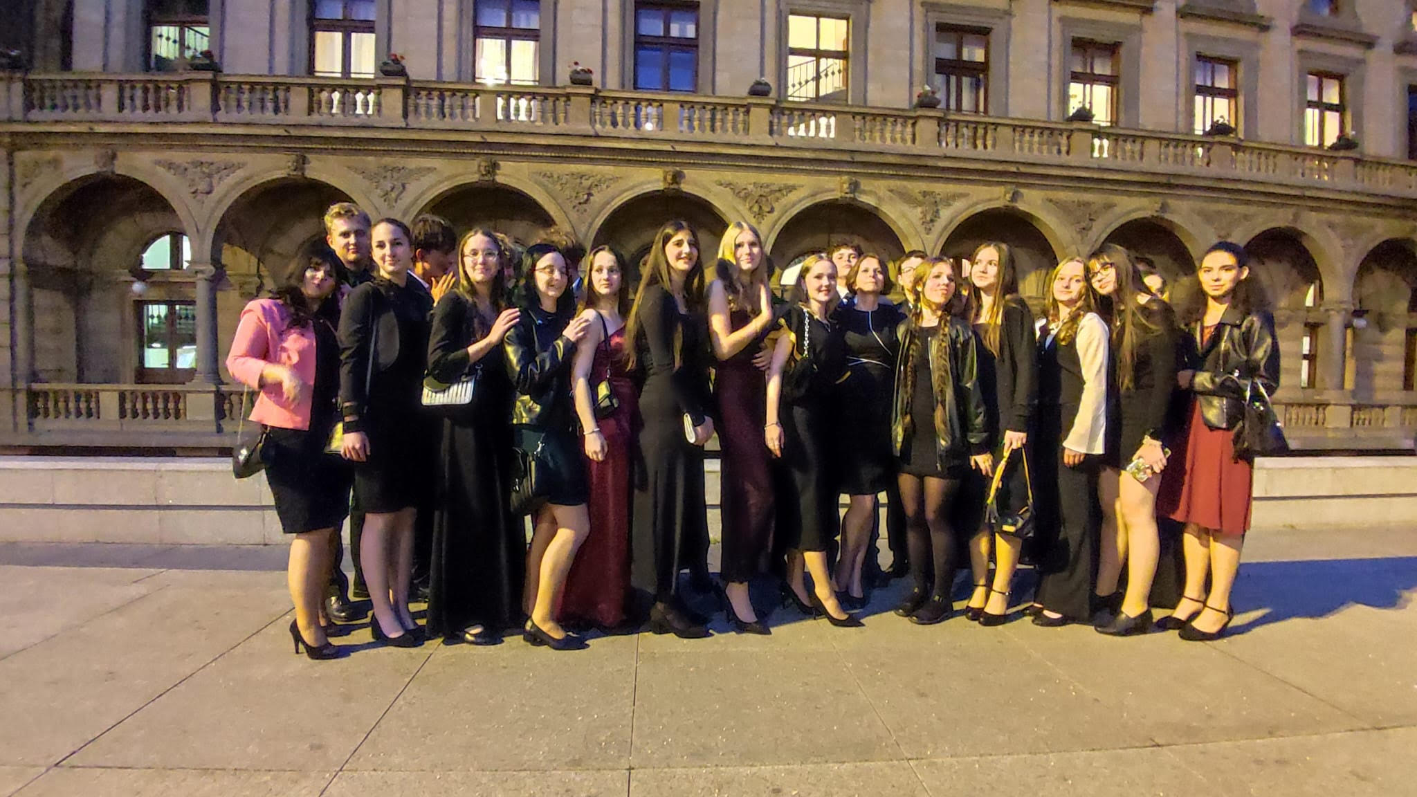 19.5.2025 se vydaly všechny 4 deváté třídy do Prahy do Národního divadla na večerní divadelní představení Kráska a zvíře. Po celodenním programu v Praze, komentované prohlídce Národního divadla od základních kamenů až po střechu, se „hodili do gala“ :-). Podívejte se, jak jim to všem moc slušelo 🙂