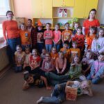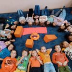 Nechyběla samozřejmě ani hra na detektivy – děti vyhledávaly oranžové předměty kolem sebe i ve vlastní fantazii. Objevily se pomeranče, dýně, listy, pastelky, zvířata, popelářské. Dokonce už také víme, že oranžová je národní barvou Nizozemska. Z měsíce září si pamatujeme, že zvládneme i oranžovou sami namíchat – spojením žluté a červené, to je přece jasné :-).