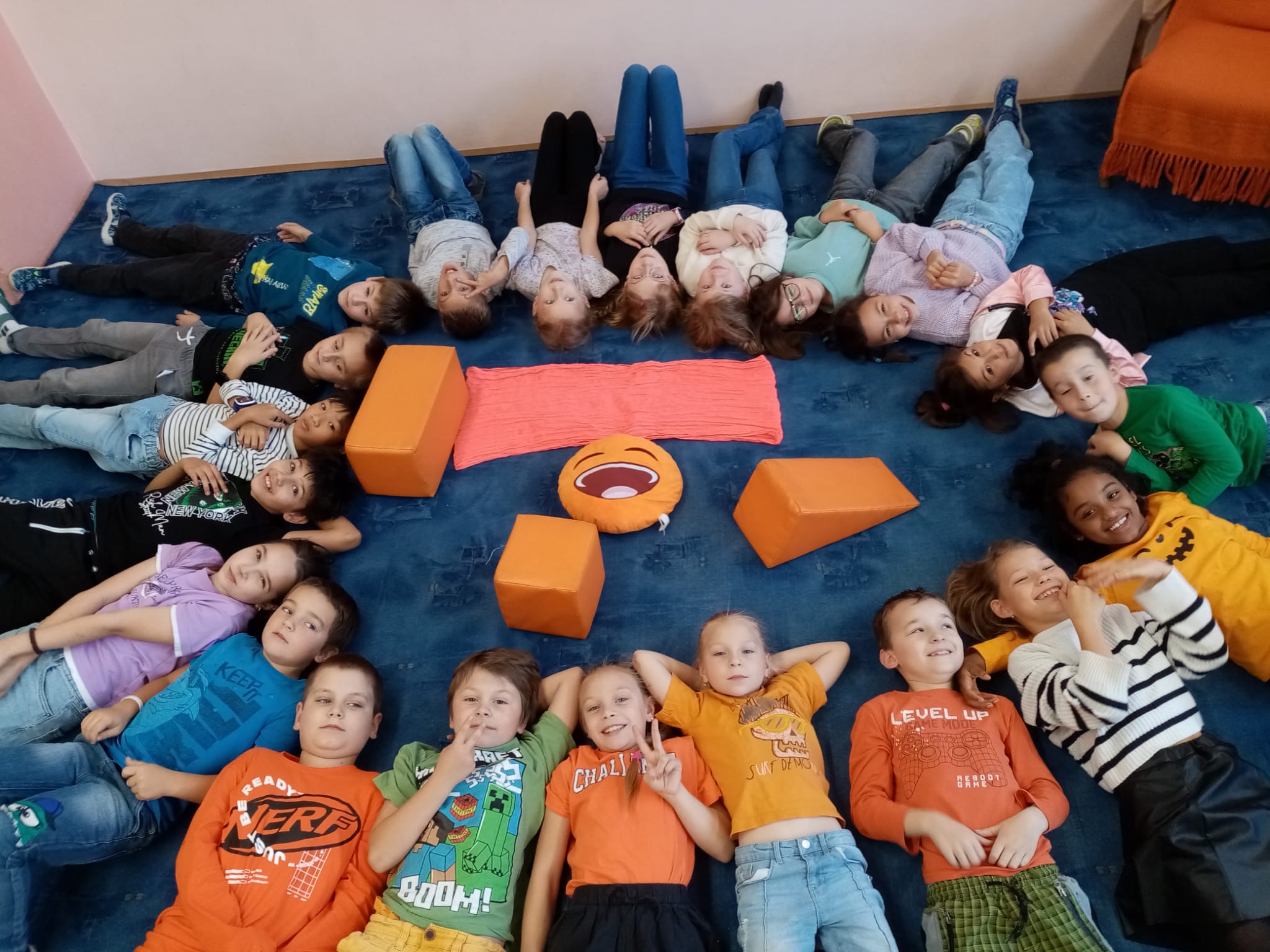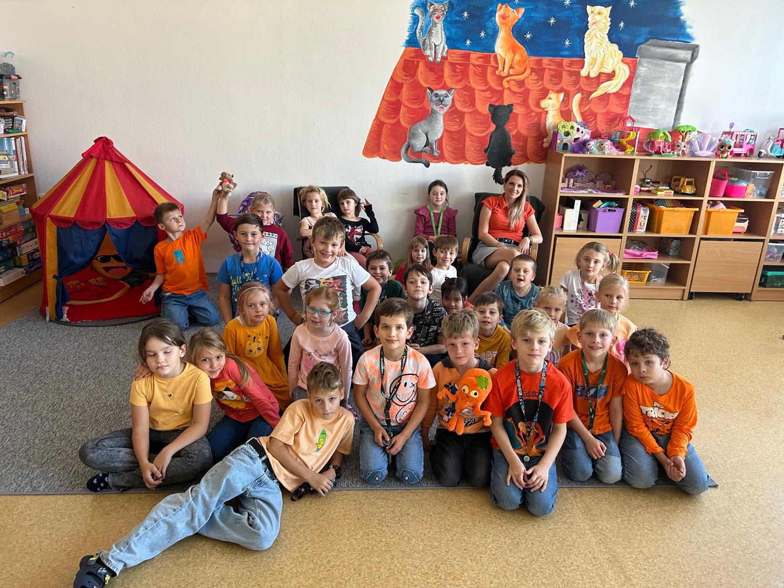 V úterý 14. října ovládla školní družinu barva, která nešla přehlédnout – oranžová. Oranžová barva, která se stala barvou měsíce, nás provedla celým dnem plným her, tvoření, zajímavostí i důležitých poznatků. Děti se společně zamýšlely nad tím, co všechno pro nás barvy znamenají – a konkrétně oranžová? Ta má opravdu co říct! Je to barva radosti, energie, tepla a přátelství. Povídali jsme si o tom, jak oranžová působí na naši náladu, jak může povzbudit kreativitu nebo zlepšit soustředění. A také o tom, že někteří lidé, kteří mají oranžovou rádi, bývají přirozeně optimističtí a otevření světu.