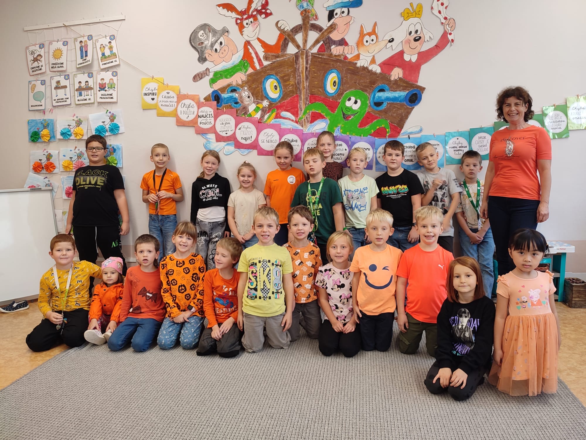 Děkujeme dětem za jejich radost, zvědavost a nápaditost – a vám, rodičům, za to, že s námi sdílíte barevná dobrodružství školní družiny. Už teď se těšíme, jakou barvu si vezmeme na mušku, teda vlastně na tričko příště! 🙂