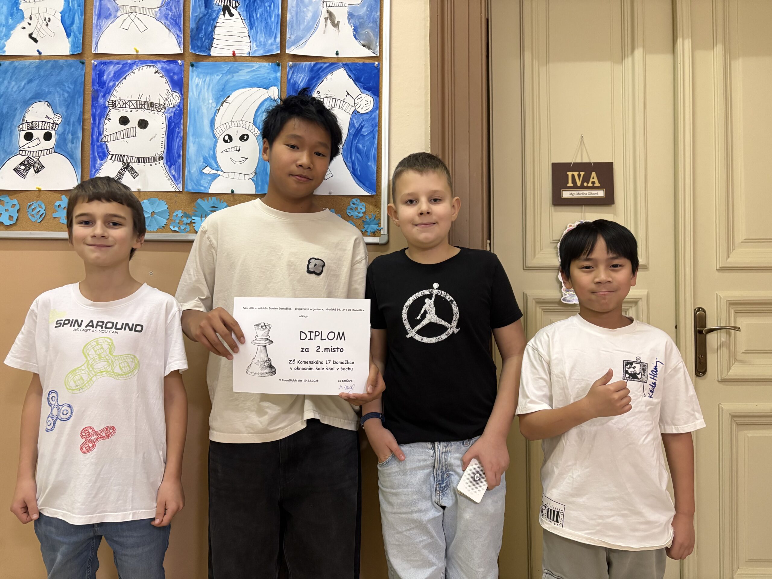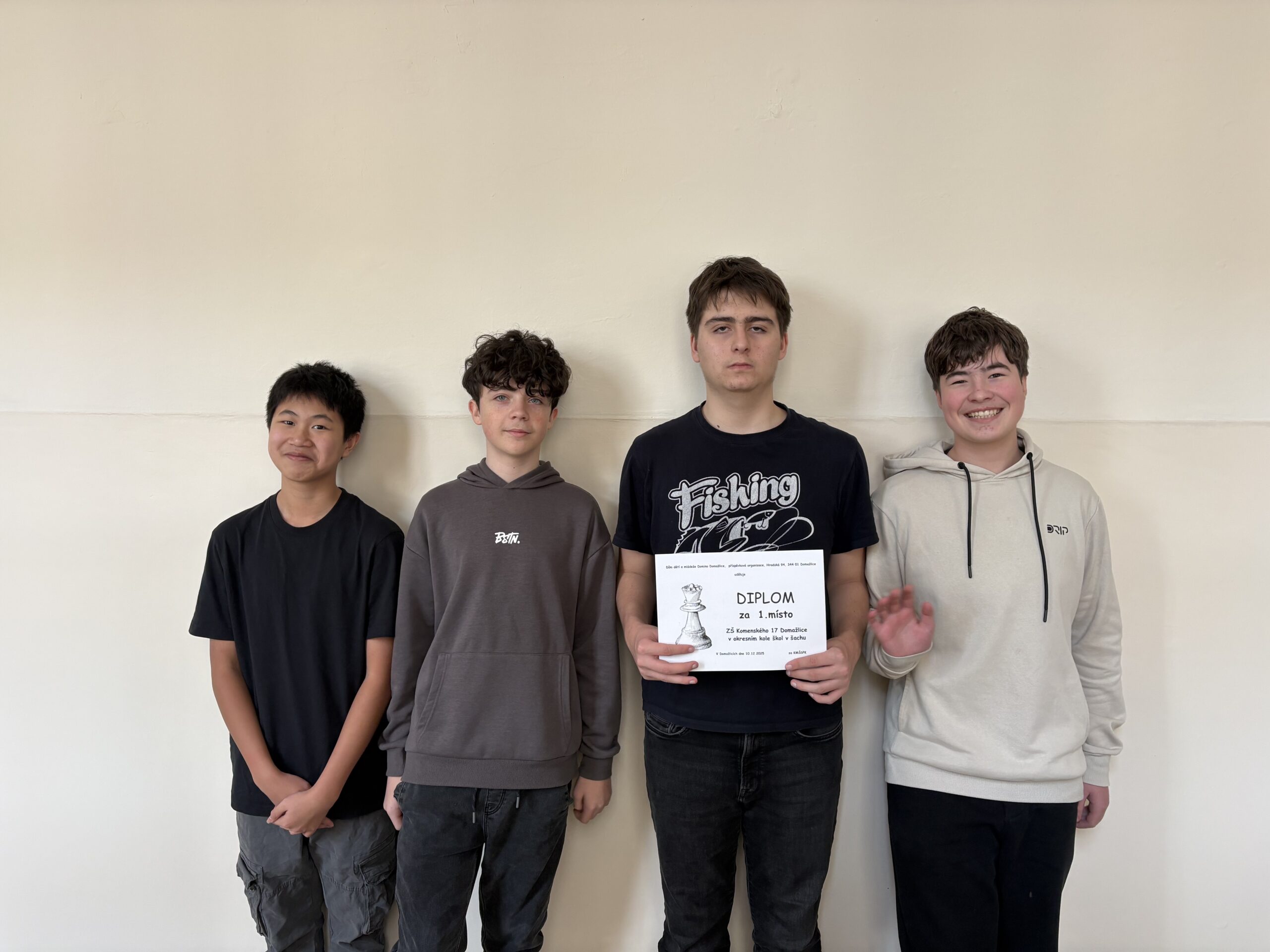 Ve středu 10. 12. 2025 se konalo okresní kolo v šachu. Naši reprezentanti dosáhli skvělého úspěchu. Družstvo starších žáků ve složení Antonín Liebich, Pavel Kroupar, Dong Viet Bach a Martin Peták celý turnaj vyhrálo a z 1. místa postoupilo do krajského kola. Družstvo mladších žáků Vojtěch Soukup, Quoc Huy Nguyen, Marek Pazdera a Dinh Nhan Tran obsadilo ve své kategorii 2. místo a také si zajistilo postup do krajského kola. Děkujeme chlapcům za reprezentaci školy a držíme jim palce do krajského finále!